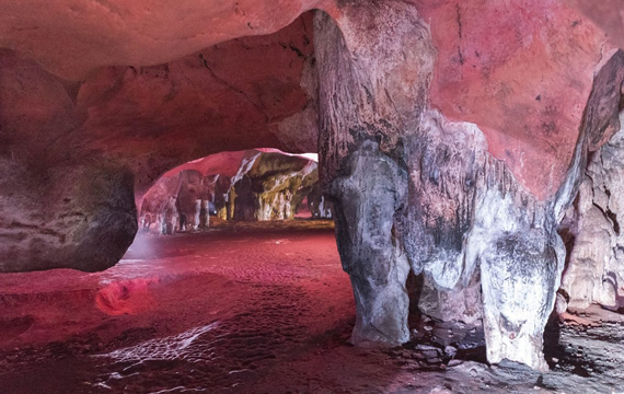Las Grutas de Loltún, a 110km de la ciudad de Mérida, forman parte del extenso sistema cavernoso del sur del estado de Yucatán y se encuentran acondicionadas para ser recorridas a lo largo de sus 2km de extensión. La evidencia paleontológica sugiere que se le dió uso como campamento en etapas tempranas (9,000 a.C.) y posteriormente habitacional.
