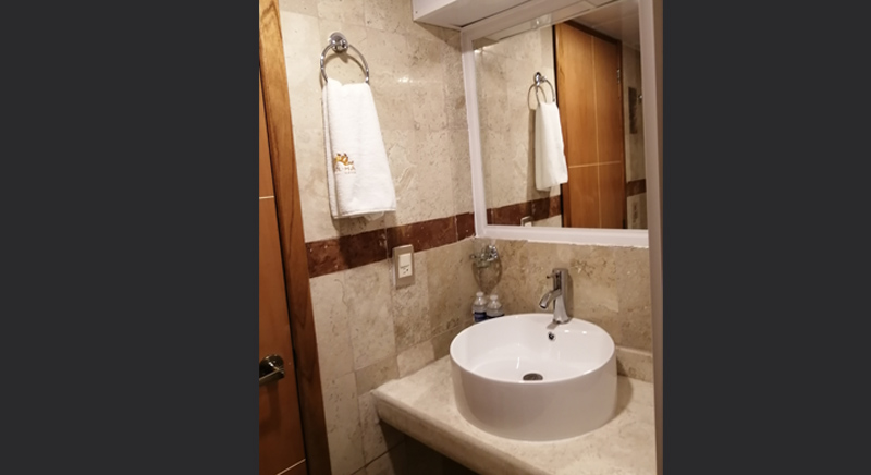 Las madera en las habitaciones es de Cedro, los baños son forrados de marmol Travertino. El agua de la habitacion paso por un proceso de Suavizado.